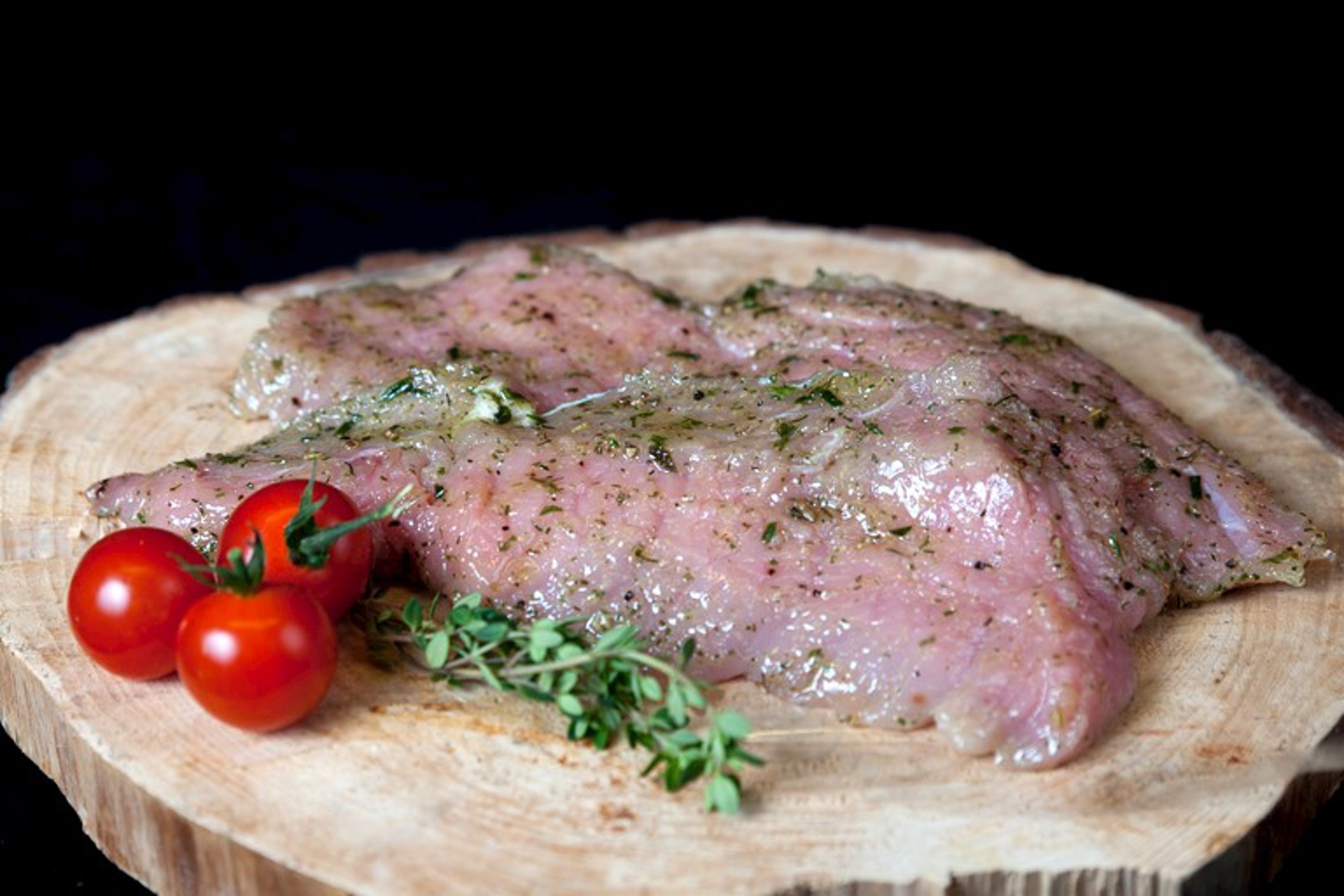 Héérlijk mals! Stukje mager kalfsvlees omwenteld met een marinade op basis van zeezout,olie en zwarte Lampong peper