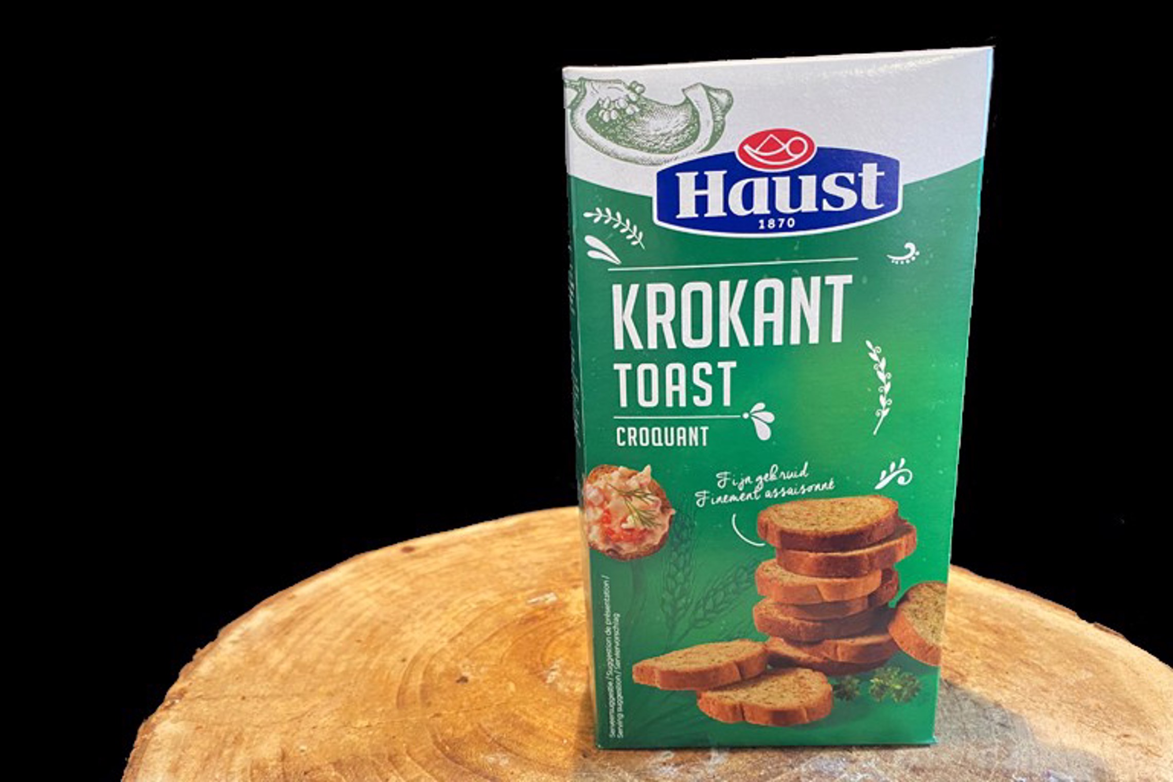 Dubbel ovengebakken toastjes. De bovenkant van deze toast is voorzien van een fijn laagje paneermeel. Hierdoor blijft de belegde toast extra lang krokant.