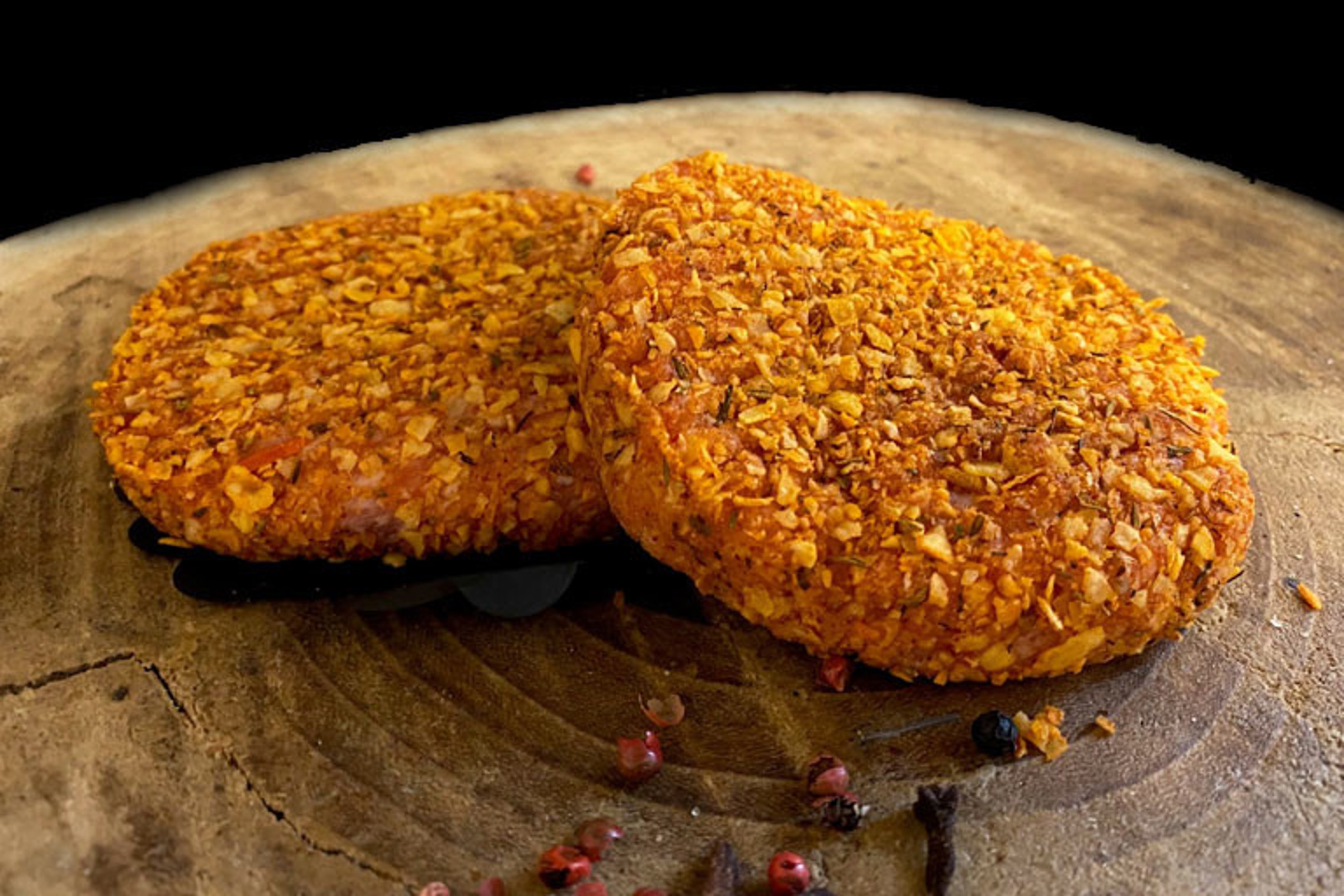 Kruidige burger van gemengd gehakt, omwikkeld in een krokante zigeunerpaneer met een pittige smaak van gebraden uien, paprika en diverse kruiden en specerijen.