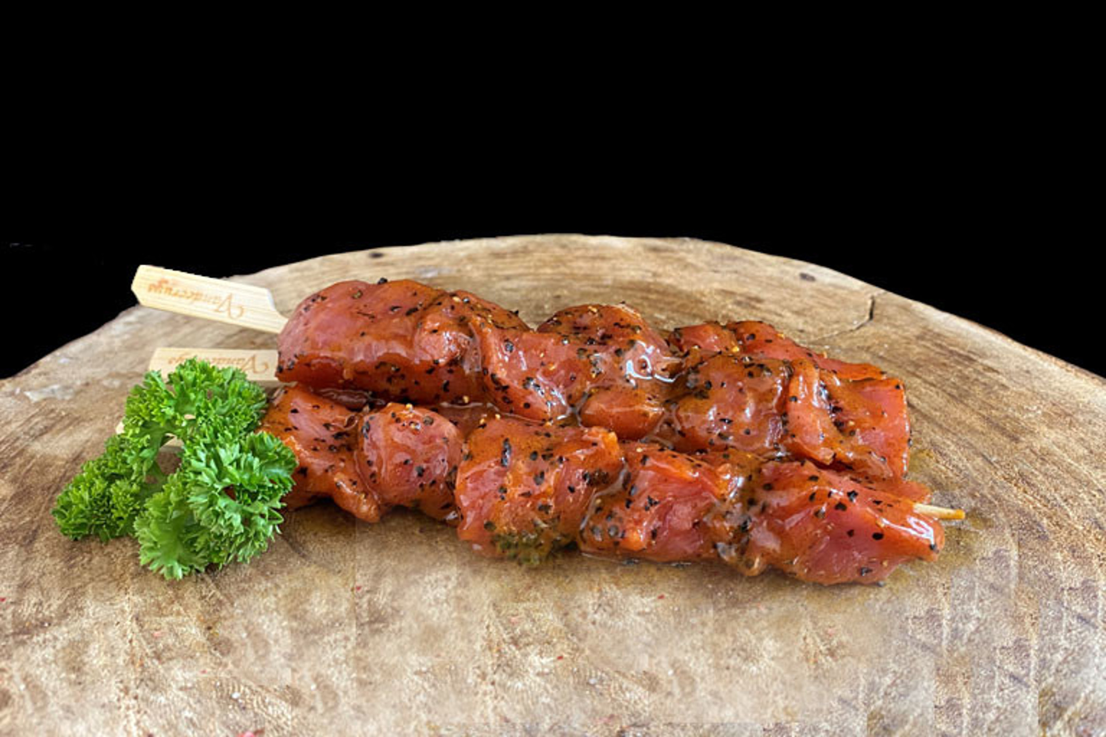 Voor de fijnproevers. Lekker gezonde en fijne blokjes kalfs op een spiesje. Perfect voor het aperitief, of voor de kleine honger achteraf.