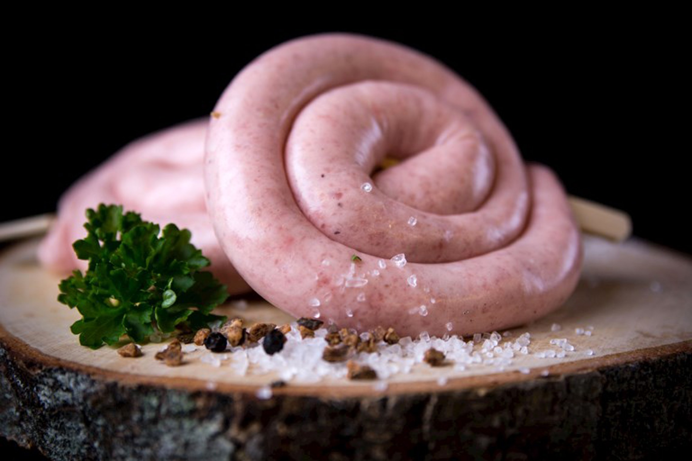 Lichtjes gekruid kipgehakt in een dunne darm afgevuld.