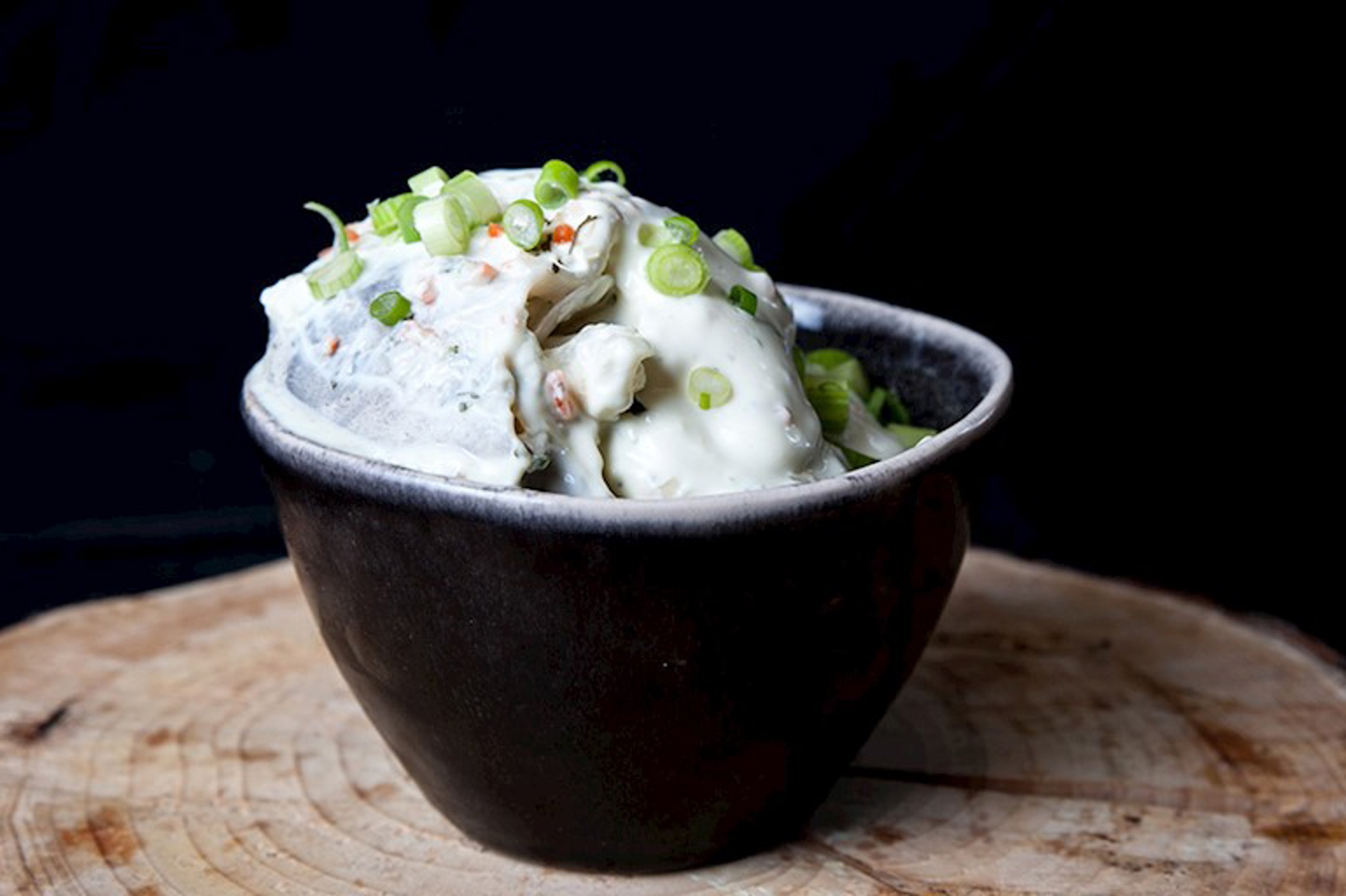 Supermalse verse haringfilets in een sausje van tartaar en ajuinringen. Afgewerkt met pijpajuin.