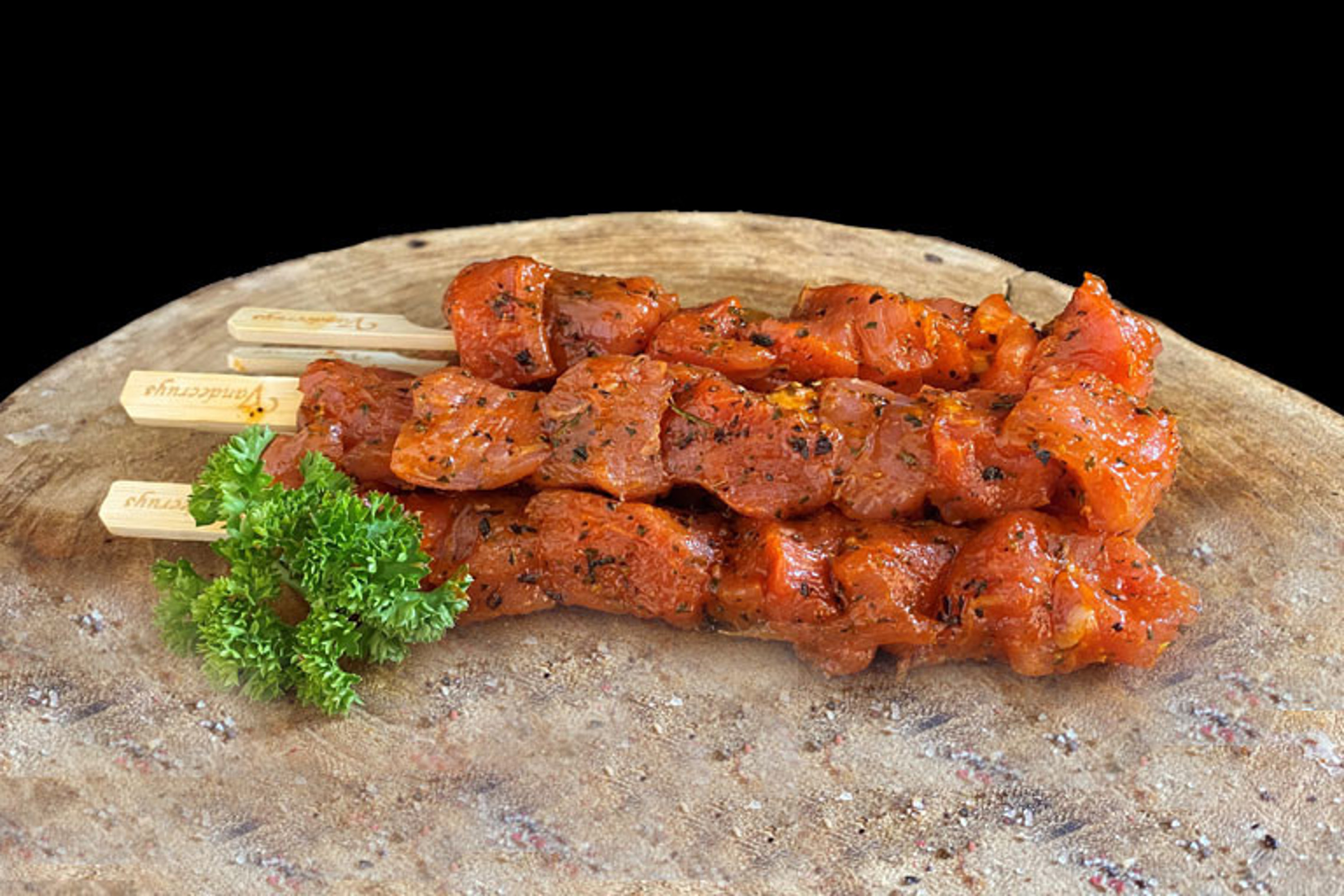 Heerlijk gemarineerde blokjes van het fijnste varkensvlees op een stokje.