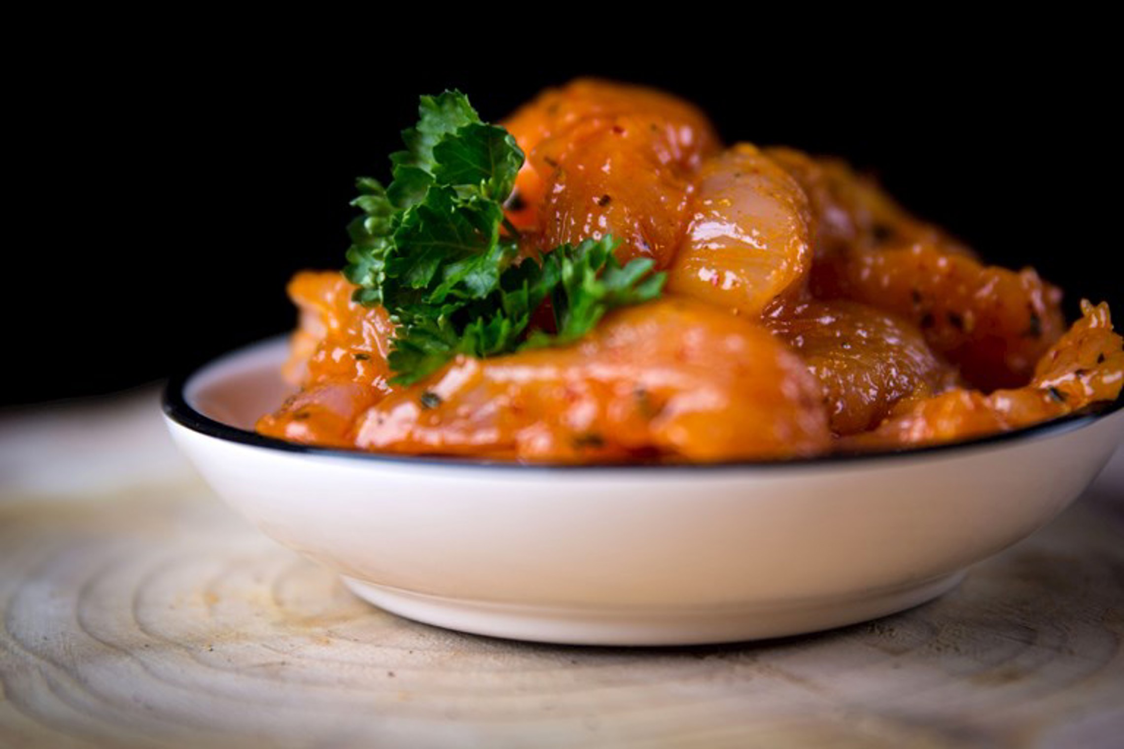 Reepjes kipfilet die lekker gekruid worden, te gebruiken in tal van wokgerechtjes.