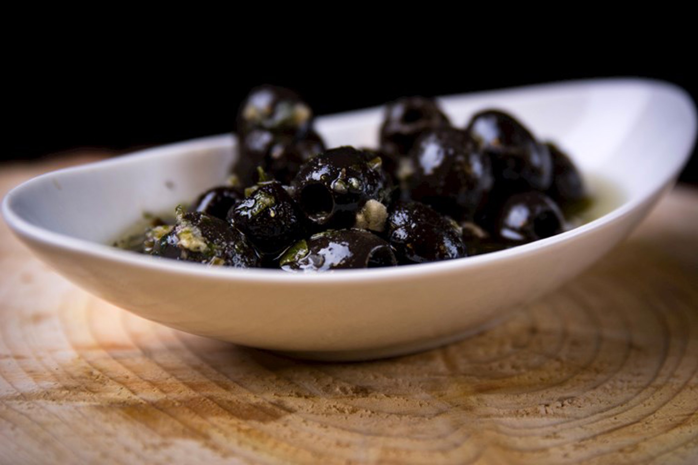 Grote olijven gevuld met pepperoni in een heerlijke marinade met verse kruiden.